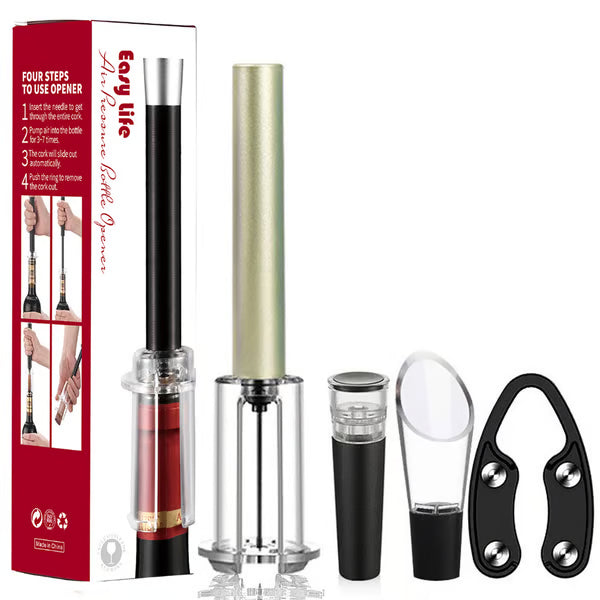 Ditch the tiresome corkscrew. With air-pressure technology, just push, pump, and pop – your wine is open in seconds, silent and gloriously efficient.